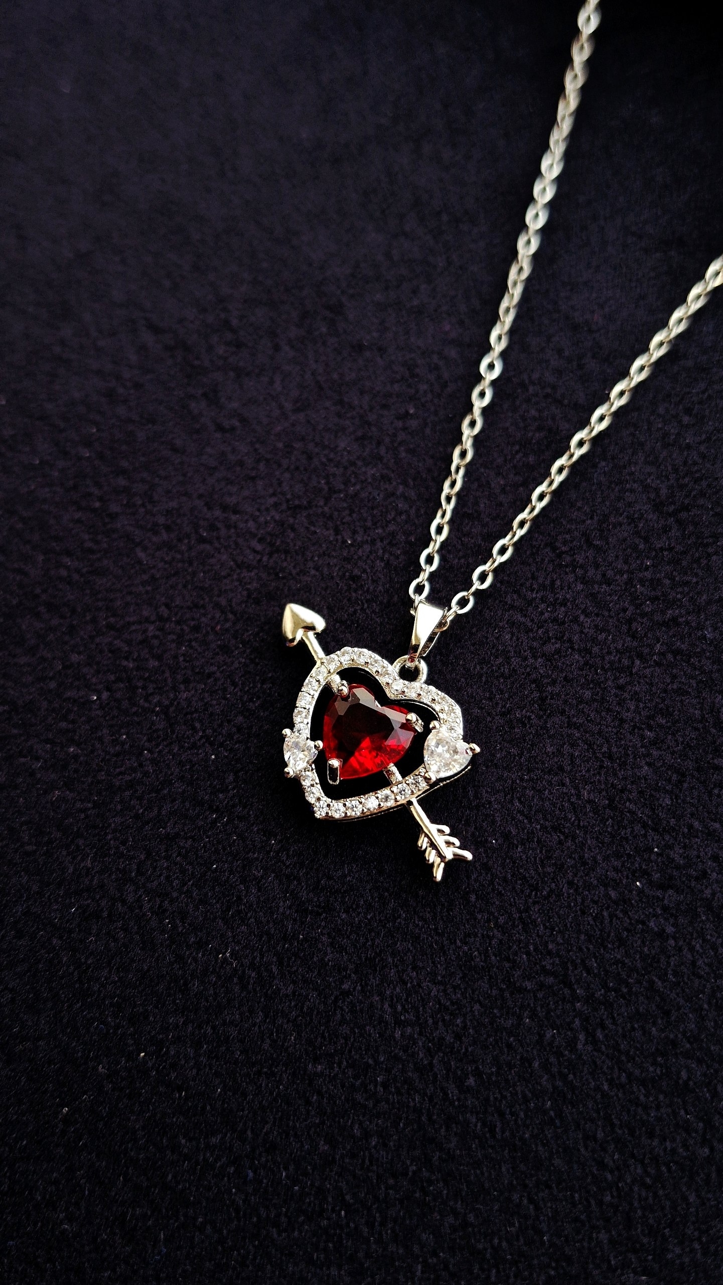 گردنبند طرح قلب قرمز کریستالی تیر خورده ❤️💘💎 جذاب و شیک 😍🔥 مناسب خاص پسندا ✨🌝 -با بالاترین کیفیت ممکن -وارداتی -استيل و رنگ ثابت -نگین بدون ریزش