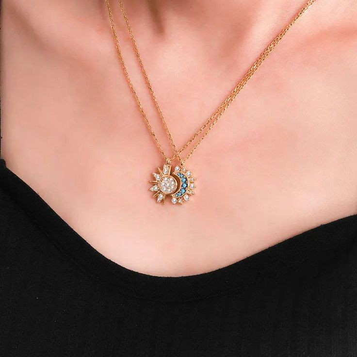 ست انگشتر و گردنبند ماه و خورشید فول نگین🌝🌞