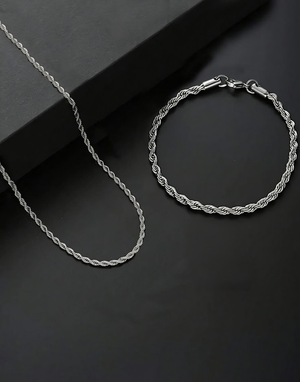 ست دستبند و گردنبند زنجیر طنابی 🩶