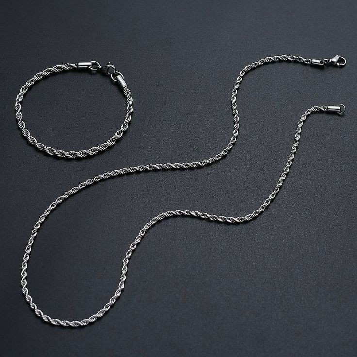 ست دستبند و گردنبند زنجیر طنابی 🩶🪢