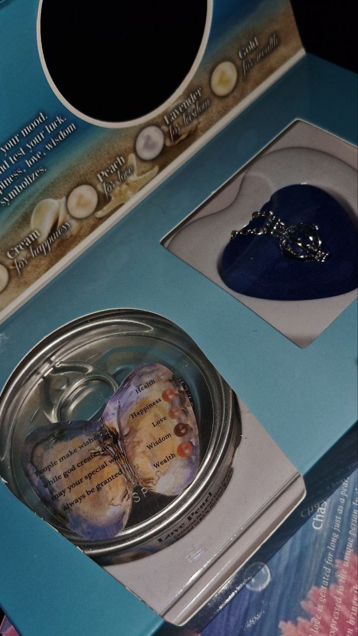 پک مروارید عشق شامل گردنبند و کنسرو صدفه که داخل صدف یدونه مرواریده رنگ مرواریدا مشخص نیست و رندومه و هر رنگ نماد یک چیزه
