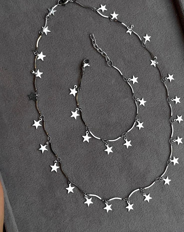 گردنبند و دستبند زنجیر ستاره ای🌟🩶