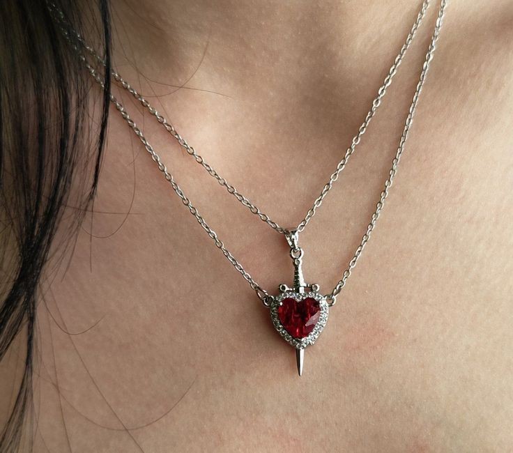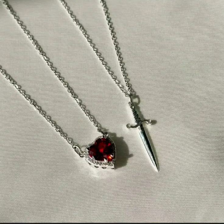 ست گردنبد قلب و شمشیر 🫀🗡 برای کسایی که دنبال گردنبند ست میگردن😍 مناسب برای ولنتاین و ست کردن با پارتنرتون و یا دوستتون ❤️ استیل و رنگ ثابت